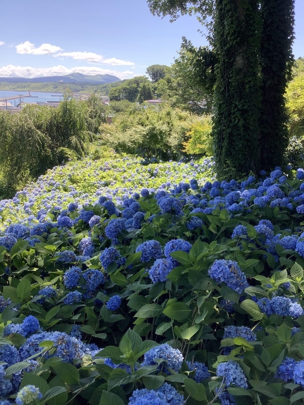男鹿市にあり、月日をかけて紫陽花を植えられ、素晴らしい景色に仕上げています。